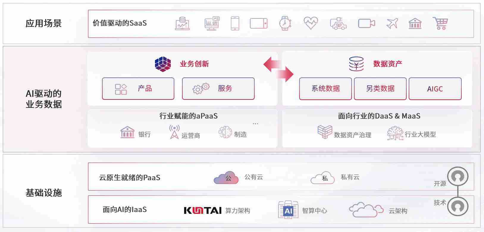 数字时代,,,,围绕企业数字化转型的关键要素,,,,808钱包数码开创性的提出数云融合战略和技术体系框架,,,着力在云原生、、、数字原生、、AI原生和信创产业上架构产品和服务能力,,,为处在不同数字化转型阶段的快消零售、、汽车、、、、金融、、医疗、、政企、、、教育、、、运营商等行业客户提供泛在的敏捷IT能力和融合的数据驱动能力,,,构建跨界融合创新的数字业务场景和新业务模式,,助力企业级客户建立面向未来的核心能力和竞争优势,,全面推动社会的数字化、、、智能化转型升级。。。。
